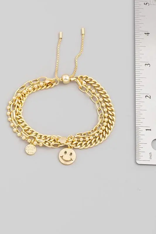 Multi Chain Smiley Face Adjustable Bracelet