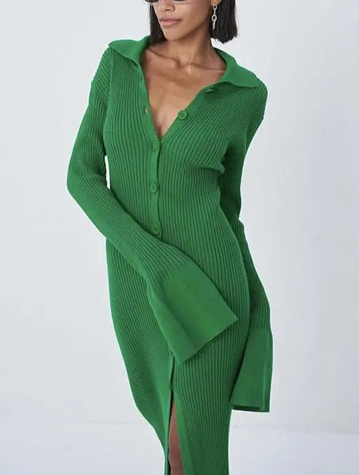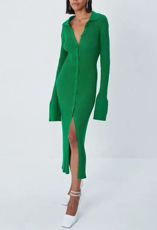 Noir Casual Slit Midi Dress - FASON DE VIV