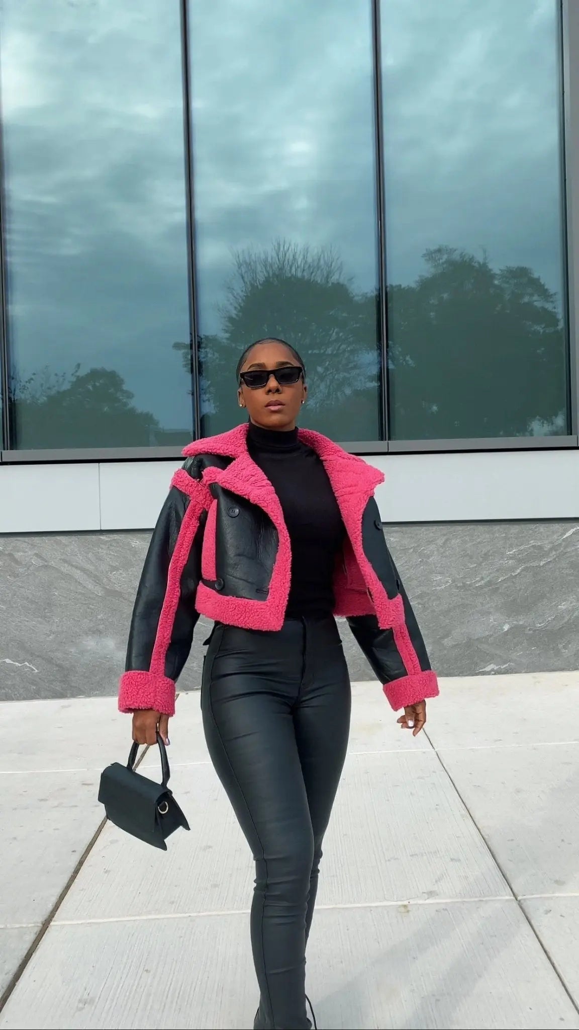 - Faux sherpa mixed with PU for a unique and stylish appearance