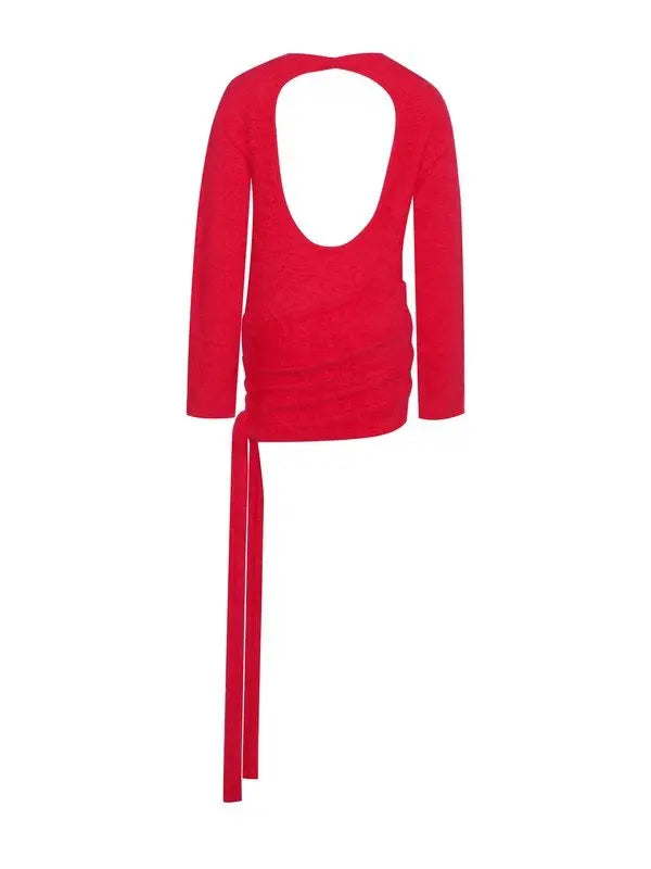 A perfect combination of comfort and style. This long sleeve mini dress is crafted with a soft, high-stretch yarn and features a draping waist and hip, long floor length tie, and sexy open back with snap closures. Expect a trendy, oversized fit at the bodice and a form-fitting bottom hem. Whether you're attending a special event, a birthday party, or a night out, this dress has you covered. Let your inner fashionista shine!